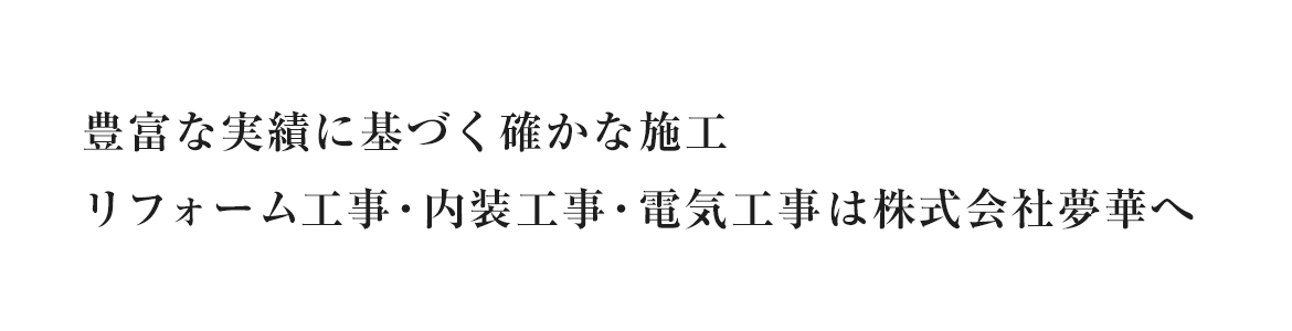株式会社夢華では、お客さま一人ひとりに寄り添い、心からご満足いただける施工をご提供しております。イメージとズレが生じないよう、打ち合わせの段階でしっかりと問題点を洗い出し、すべての工程に細心の注意を払います。
